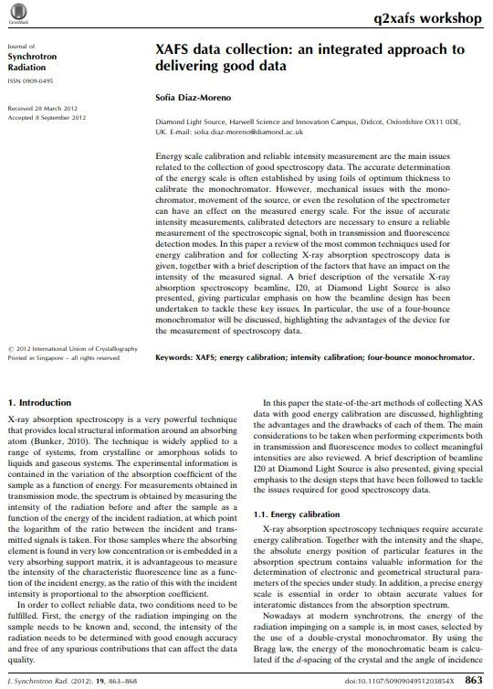 Diaz-Moreno S. J Synchrotron Rad, 2012, 19: 863-868