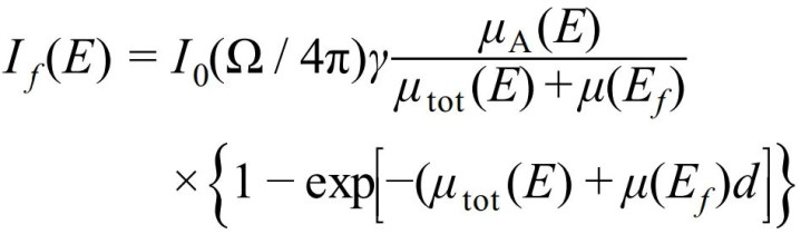 (2)样品较厚, 但待测元素浓度很低, 这样μtot(E)>>μA(E), 1−exp[−(μtot(E)+μ(Ef))d]≈1。因此
